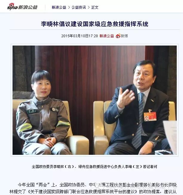 新浪公益,李晓林倡议建设国家级应急救援指挥系统